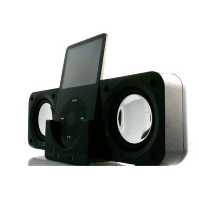 Black Apple iPod Portable Travel Size Digilife Fold-Up Compact Speakers This compact travel speaker system is ideal for use at home, at the office, or anywhere else you go. Plug in your iPod or other digital audio player and enjoy high-quality stereo sound from the 45mm aluminum speakers.